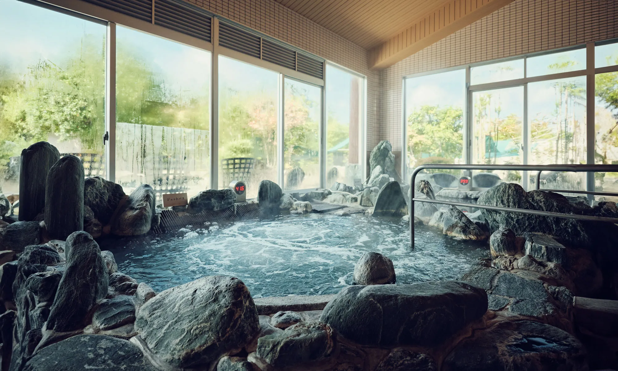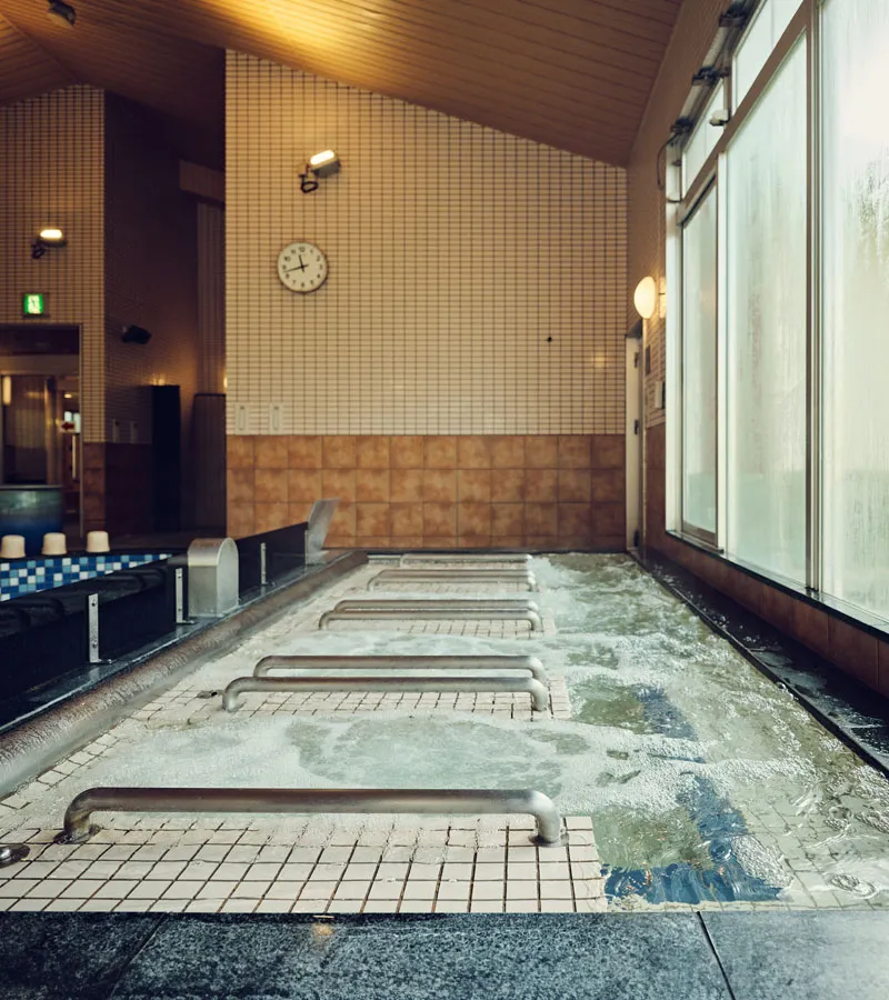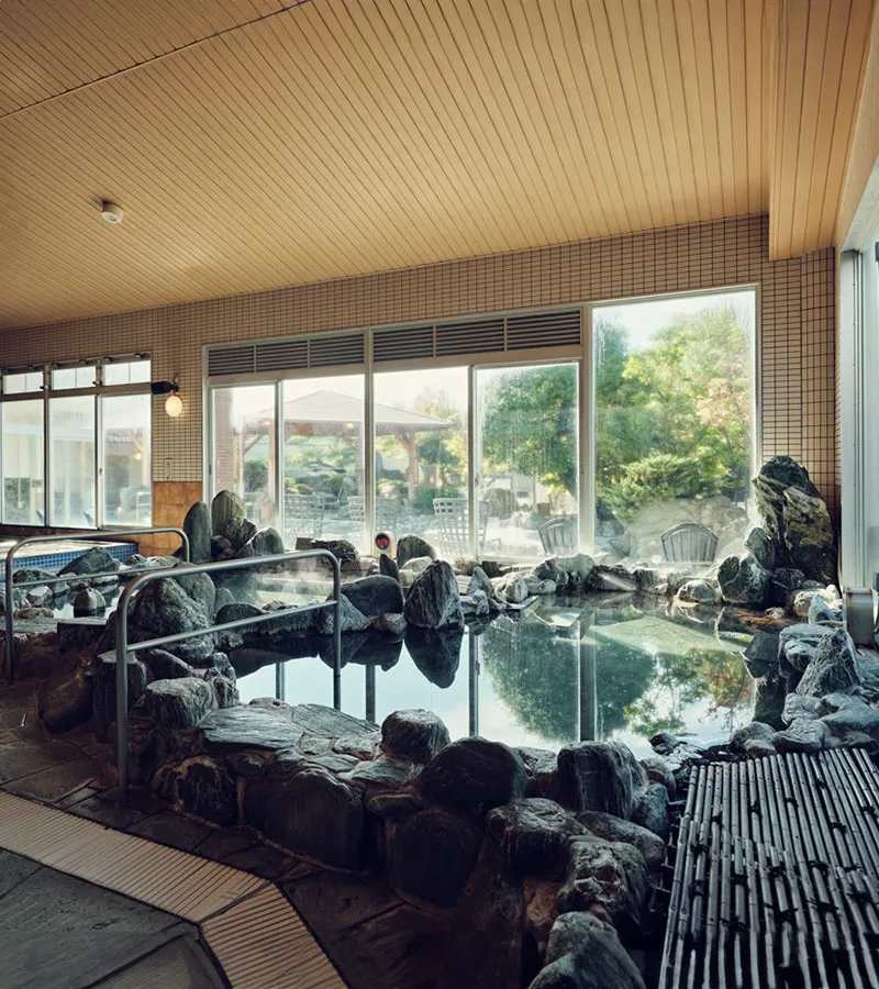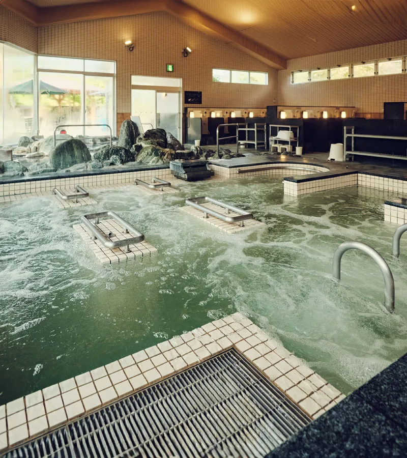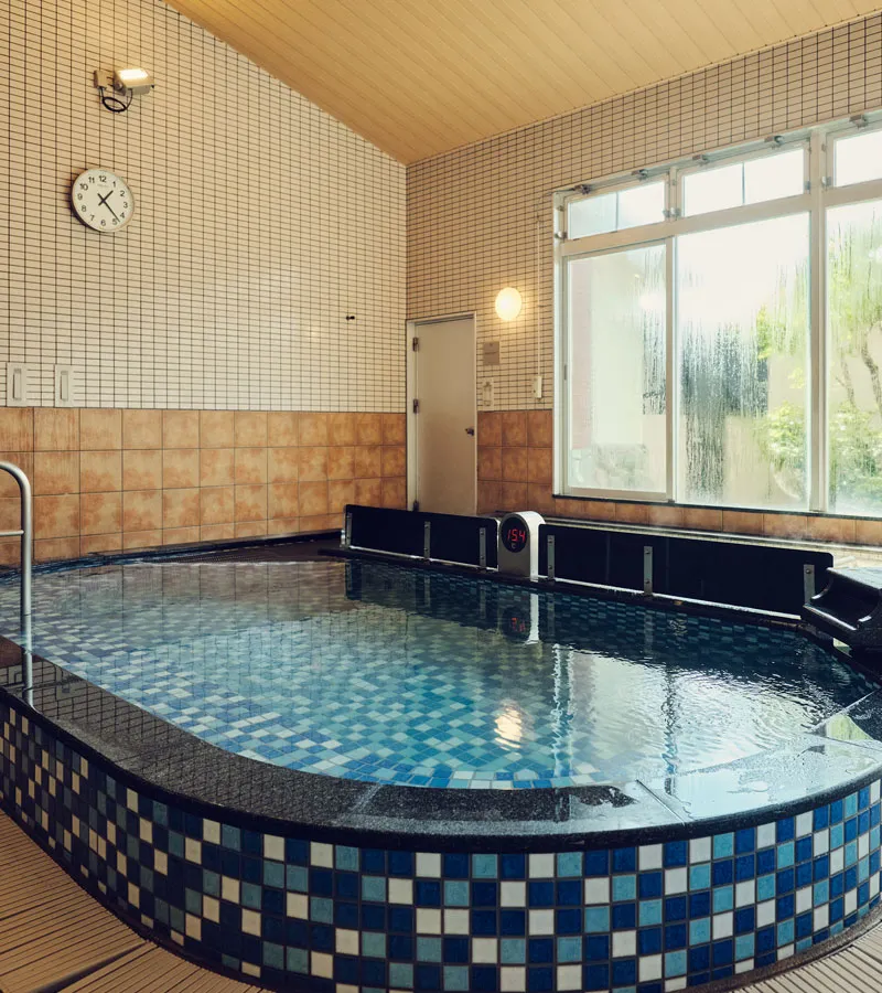 日頃の疲れを癒していただける天然温泉として当館の湯は全国でも希少な天然のラドン泉を使用しています。別名「吸う温泉」とも言われる天然のラドン泉は肌に触れるだけでなく蒸気を吸い込むだけで、血液中の尿酸や中性脂肪・コルステロール・窒素酸化物等の不要物を体外に排出し、細胞の活性化・免疫力や自然治癒力を高め、新陳代謝を促進させる効果が期待できます。内湯の室内はそんなラドン泉の蒸気でたっぷり満ちています。水温も長くゆっくり湯に浸かっていただけるようこまめに調節していますので、心ゆくまで呼吸浴の日帰湯治をお楽しみいただければ幸いです。