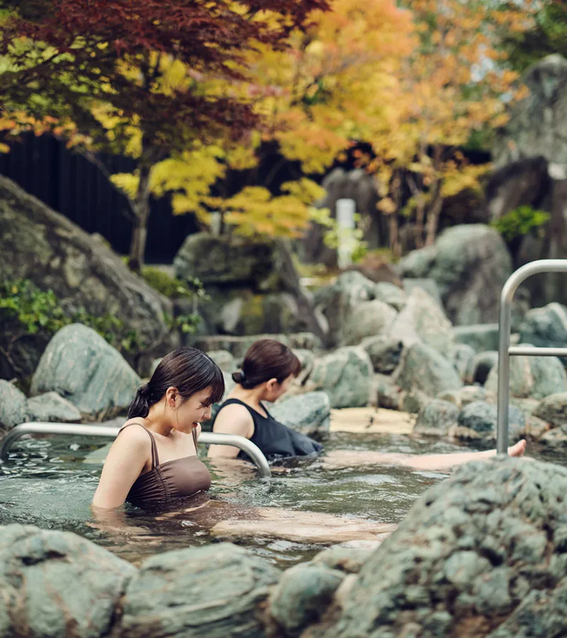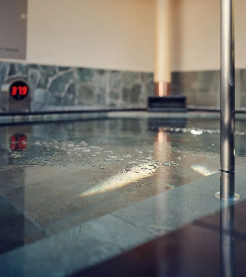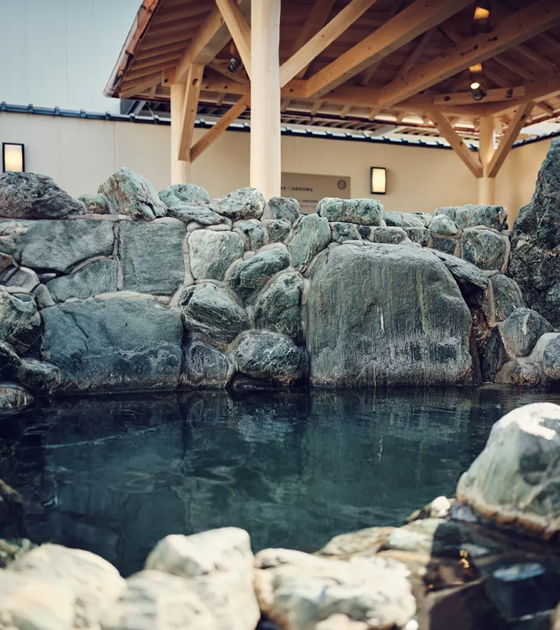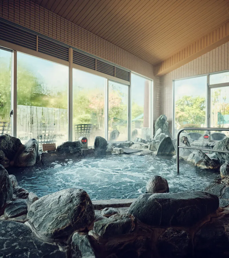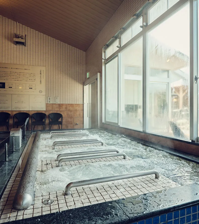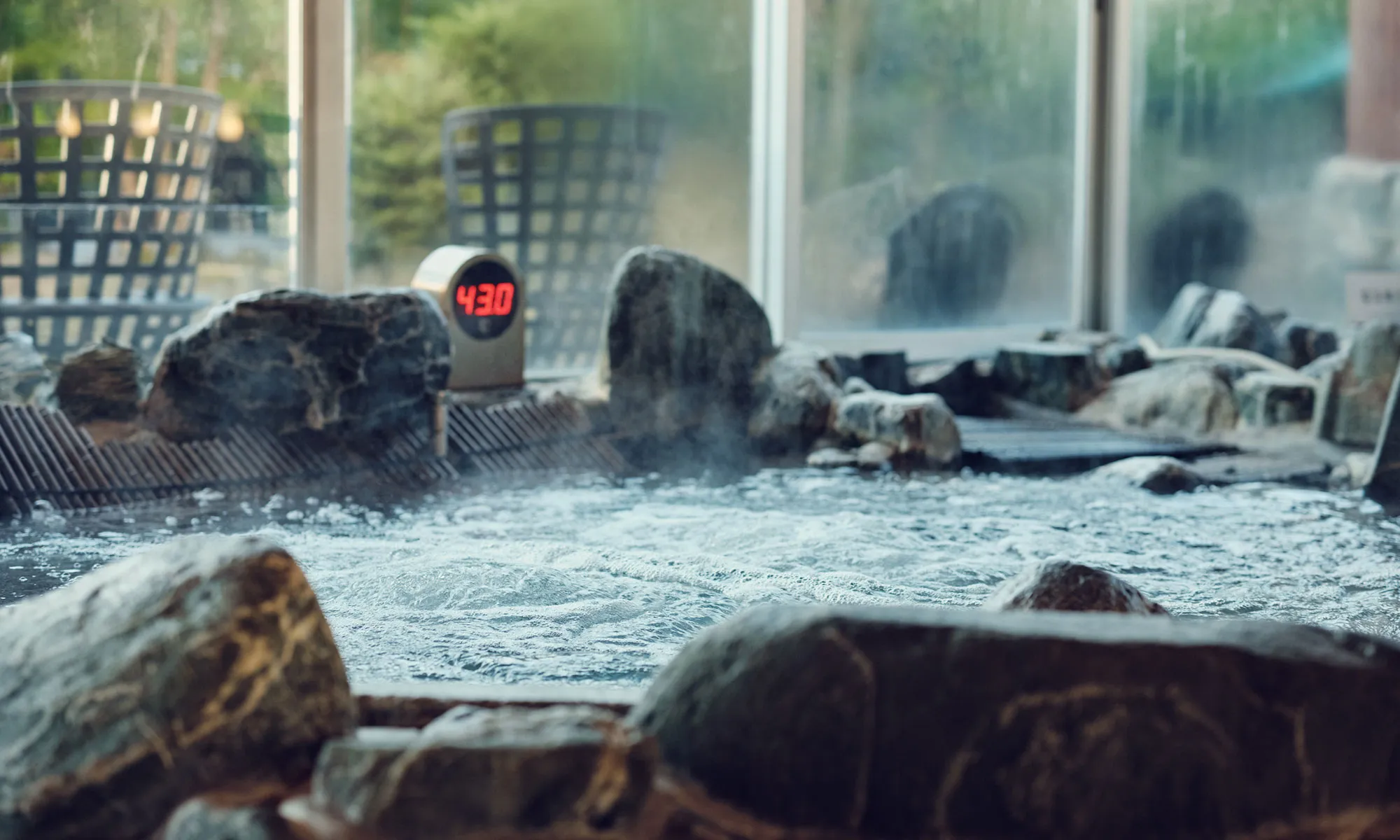 日頃の疲れを癒していただける天然温泉として当館の湯は全国でも希少な天然のラドン泉を使用しています。別名「吸う温泉」とも言われる天然のラドン泉は肌に触れるだけでなく蒸気を吸い込むだけで、血液中の尿酸や中性脂肪・コルステロール・窒素酸化物等の不要物を体外に排出し、細胞の活性化・免疫力や自然治癒力を高め、新陳代謝を促進させる効果が期待できます。内湯の室内はそんなラドン泉の蒸気でたっぷり満ちています。水温も長くゆっくり湯に浸かっていただけるようこまめに調節していますので、心ゆくまで呼吸浴の日帰湯治をお楽しみいただければ幸いです。