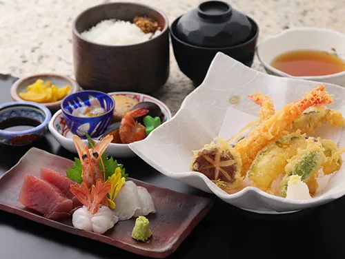 お食事処「山ぼうし」では、旬の食材と味にこだわったお食事をお楽しみいただけます。入浴後の身体はエネルギーを使った状態。定食・麺類・丼物・おつまみ・飲物など、美味・健康的なメニューを豊富にご用意していますのでご堪能ください。入浴をせずにお食事処のみを利用することもできます。ご入館の際にフロントまでお声かけください。